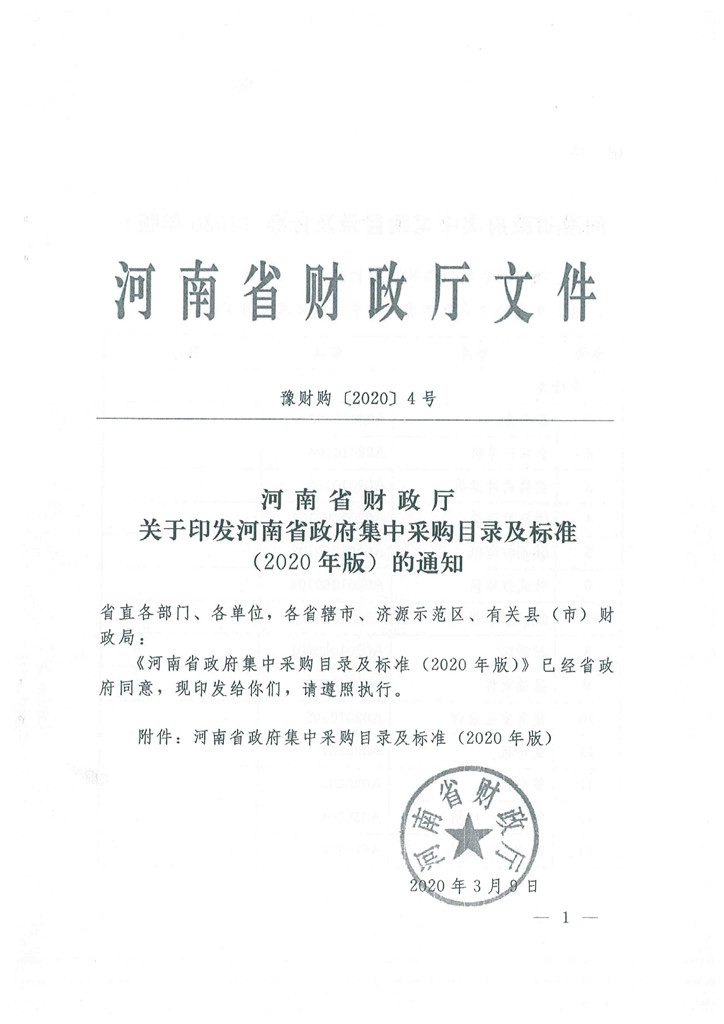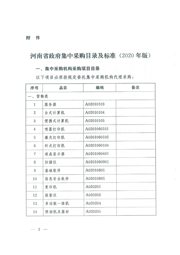 河南省財政廳關(guān)于印發(fā)河南省政府集中采購目錄及標準(2020年版)的通知